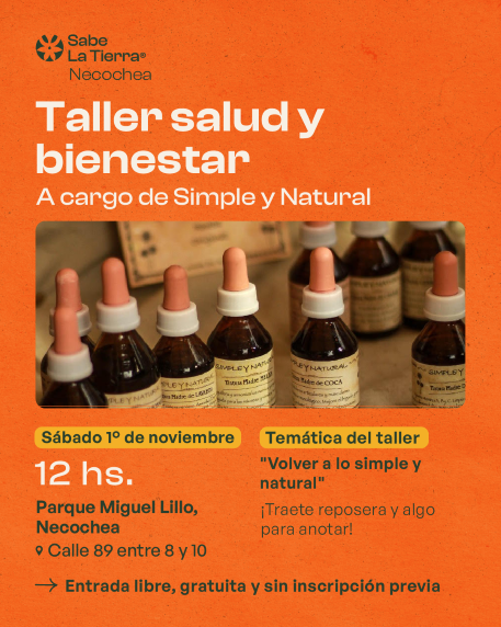 * 12 hs. Taller de Salud y Bienestar, por Simple y Natural. Taller teórico práctico sobre “volver a lo natural”.